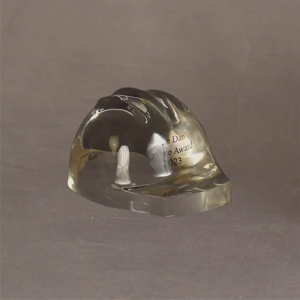Whether it’s recognizing exceptional workplace safety, honoring a career milestone, or celebrating the dedication of a first responder, this large hard hat embedment makes a bold, timeless statement.