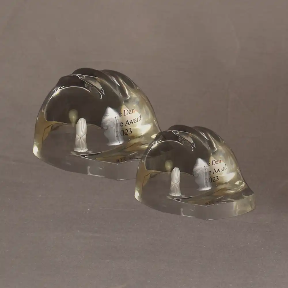 Whether recognizing workplace safety accomplishments, honoring a firefighter’s dedication, or celebrating career milestones, these protective headwear-shaped embedments deliver unmatched elegance and personalization. Ideal for corporate awards, retirement gifts, or special recognition, they offer a timeless way to commemorate success and commitment.